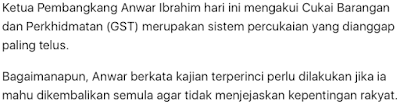 Anwar jika jadi PM dia akan melihat perlaksanaan gst, MiDin akan mengkaji keberkesanan gst kepada kerajaan.